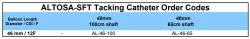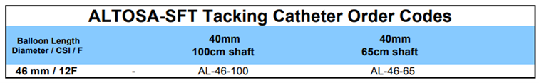 This particular balloon is available in the lengths of 100 cm and 65 cm. The highly expandable polyurethane balloon is mounted on the distal end of the shaft. The balloon can gently expand up to 46mm diameter and the balloon length is 4cm. The guidewire lumen is 0.035” and this highly flexible shaft will provide excellent push even in very tortuous vasculature.