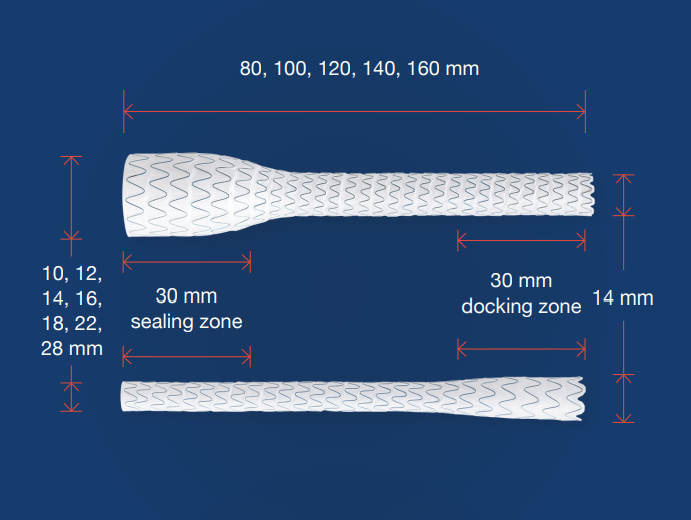 PTFE iliac limbs with helical nitinol architecture provide flexibility and minimal luminal encroachment.