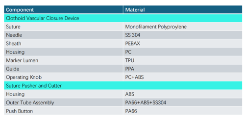 The Clothoid vascular closure system is designed to deliver a single monofilament polypropylenesuture to close femoral vessel puncture sites.