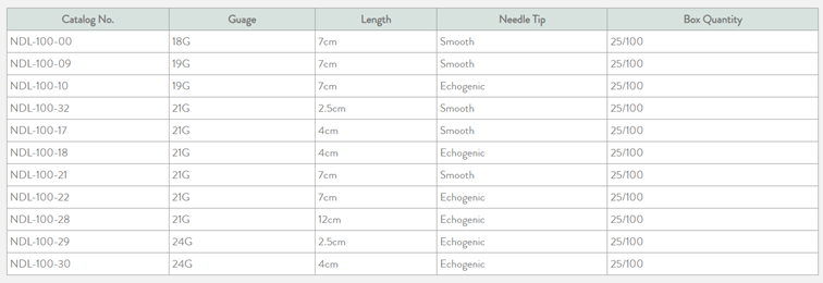 - Smooth tip or Echogenic tip for enhanced visibility